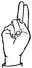На ћирилици написано ЕВГЕНИЈЕ ЦРНОГОРАЦ састоји се из 17 слова [?]. Исписано ћириличном једноручном азбуком за глувонеме: